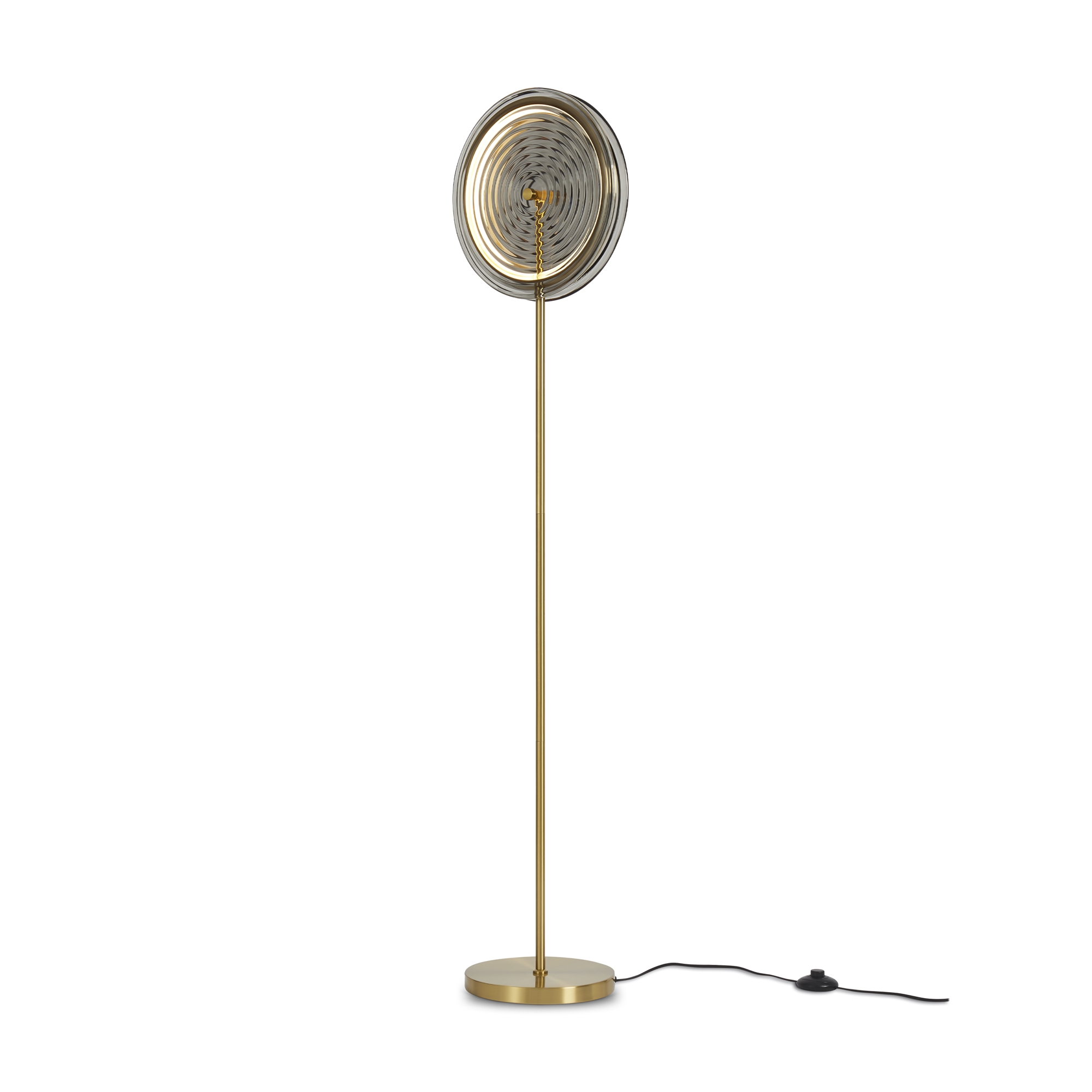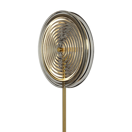 Арматура - металл. Цвет арматуры латунь. Плафоны из стекла в форме леденцов выполнены в четырех цветах: серый, зеленый, прозрачный и желто-оранжевый. Широкий спектр типов светильников: торшеры, настенные бра и подвесы. LED источник света. Цветовая температура 3000К.