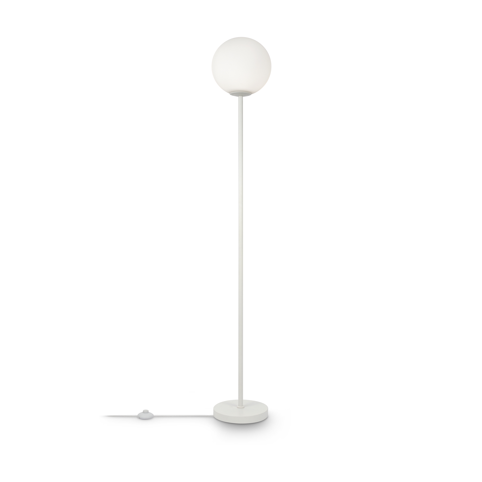 Арматура из металла в трех оттенках: белый, черный, латунь. Плафоны-сферы закреплены на округлом металлическом каркасе. Материал плафонов — выдувное стекло, цвет — белый. Высота подвесных моделей регулируется.