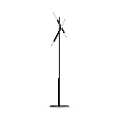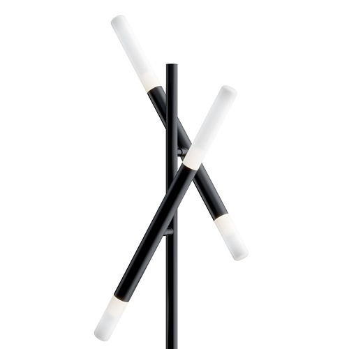 Металлическая арматура в матовом черном цвете. Цилиндрические плафоны вра щаются на 340° по горизонтали и 90° по вертикали. Возможность видоизменять дизайн светильника. Рассеиватель из матового стекла.