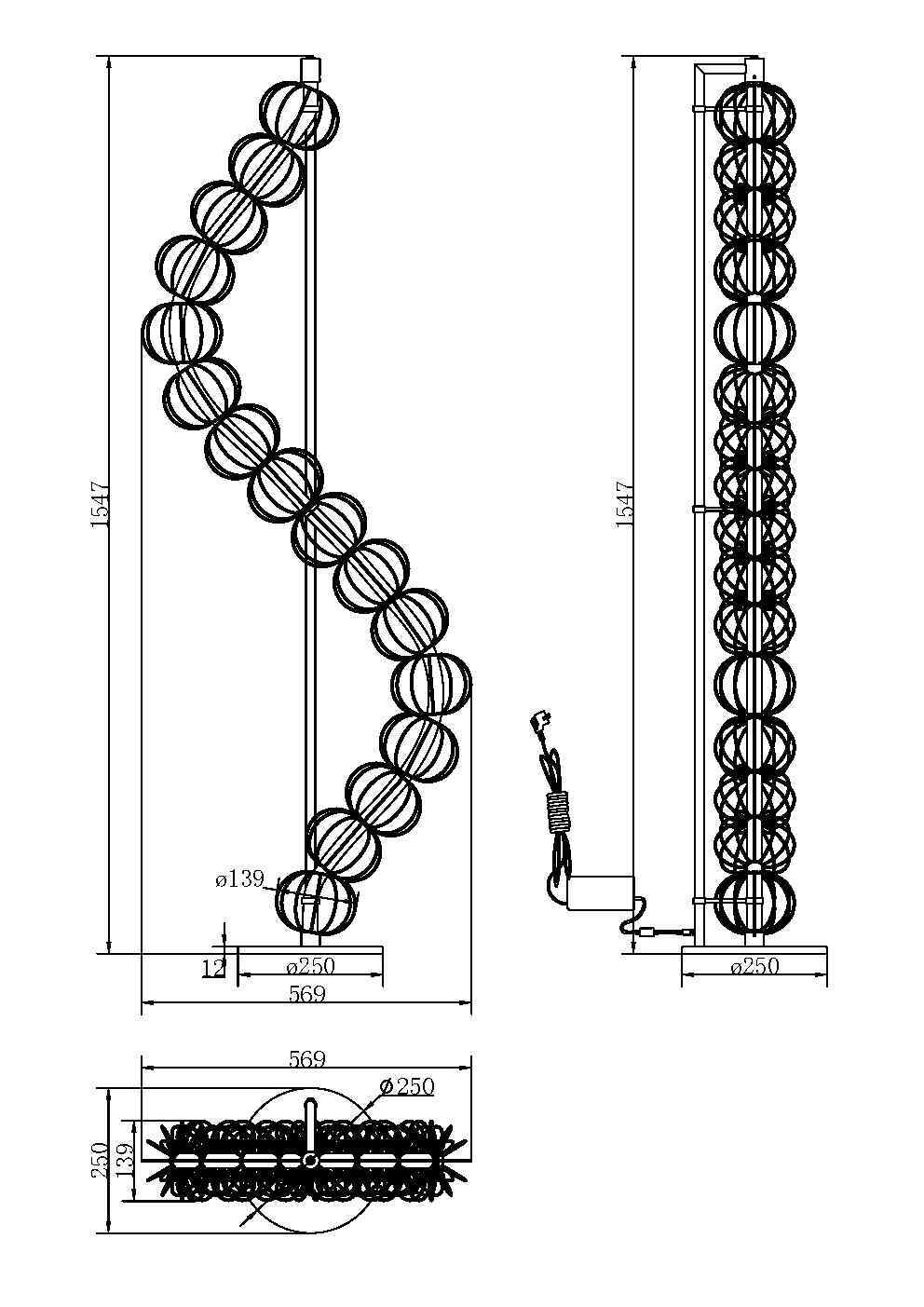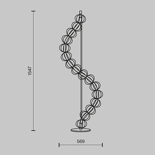 Арматура - металл, цвет - золото. Декоративные проволочные плафоны-сферы - ручная работа. Горизонтальные подвесы в двух вариатах монтажа - накладном и скрытом. Све товой элемент - силиконоваая трубка с LED-источником. Цветовая температура 3000К.