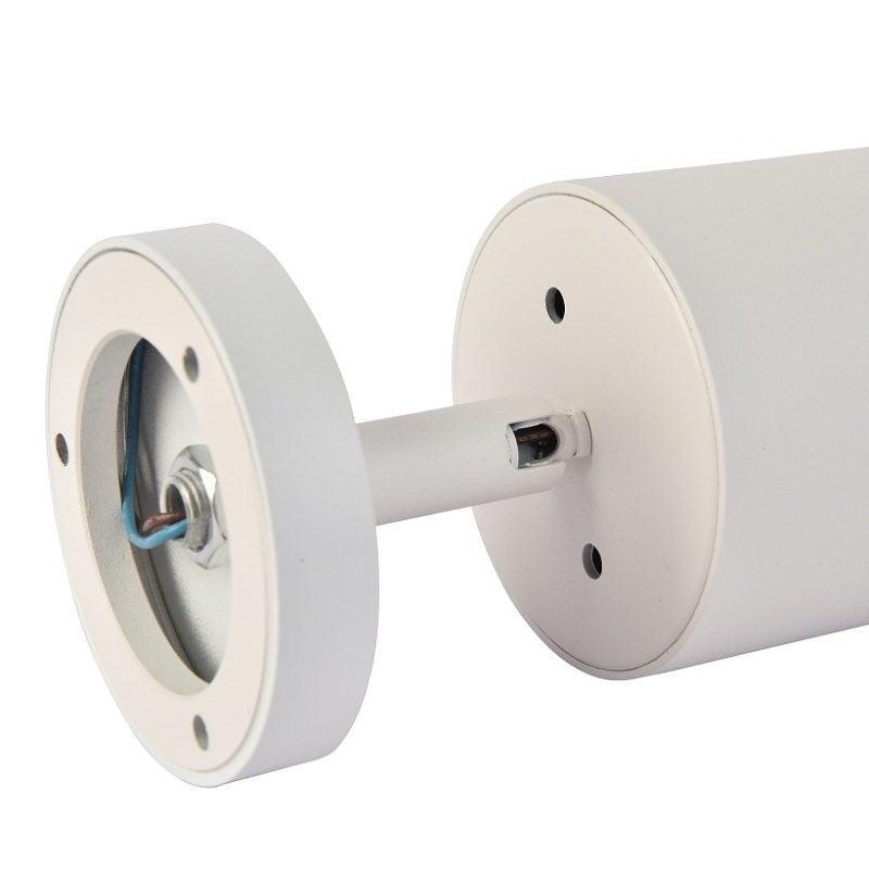 накладной светильник, каркас белого матового цвета, прозрачные декоративные элементы в виде колец, угол поворота до 90°, лампу GU10 можно менять.