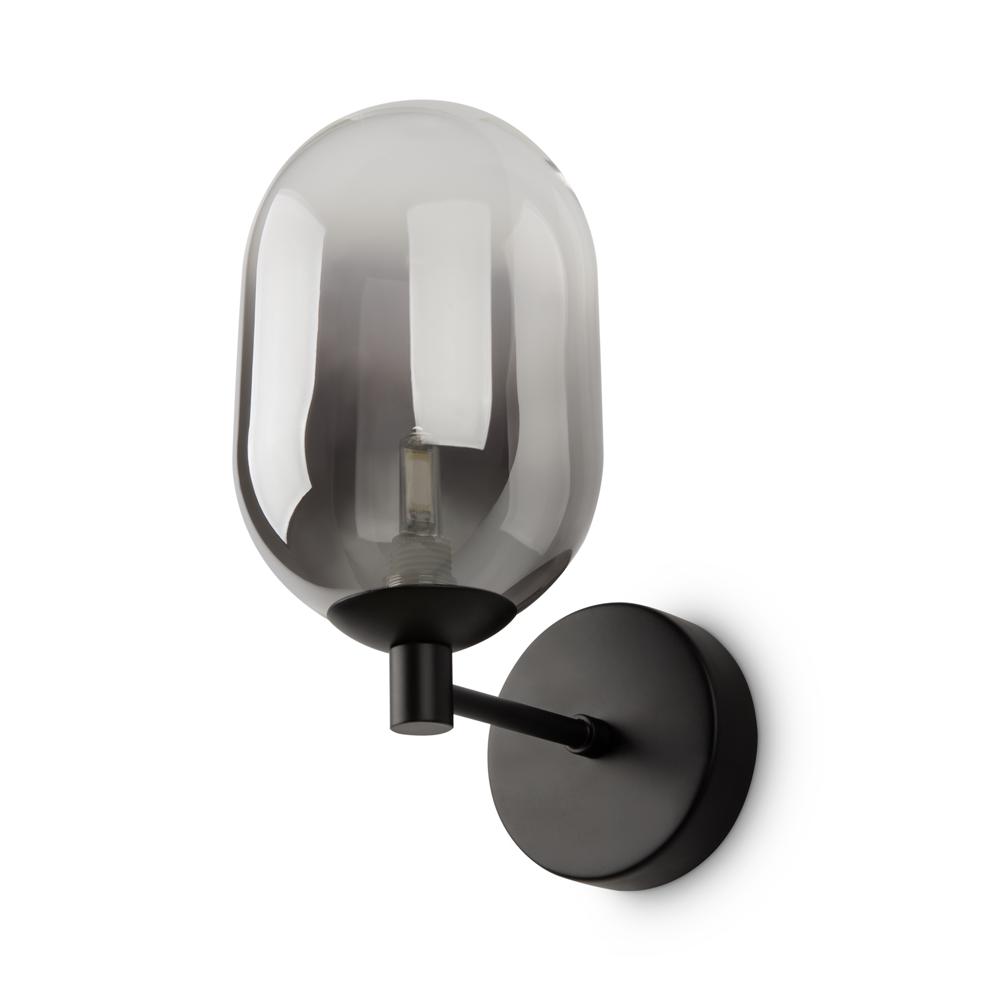 Арматура из металла матового черного цвета. Плафон из стекла с окрасом растяжка. Цвет дымчатый. Модификация — настенные, потолочные и настольные светильники. Источник света — лампа. Цоколь G9.