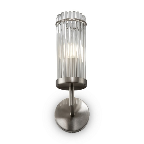 Арматура из металла. Цвет – никель. Плафоны цилиндрической формы выполнены из прозрачных стеклянных трубок. Атмосферная игра света в фактурных гранях. Источник света – лампа с цоколем Е14.