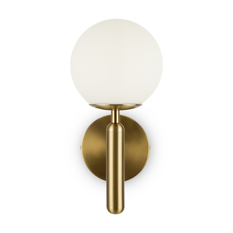 Металлическая арматура оттенка латуни. Плафоны-сферы в двух вариантах: матовое белое стекло и прозрачное с рельефной фактурой. Широкий ассортимент для зональной подсветки. В качестве источника света используется лампа с цоколем Е14.