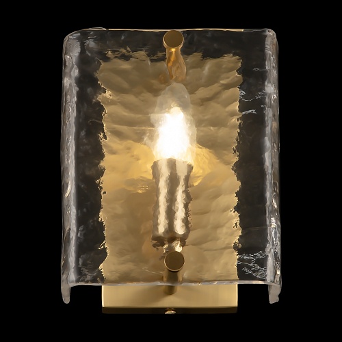Металлическая арматура оттенка латуни. Декор – литое рельефное стекло. В качестве источников света используются лампы с цоколем Е14.