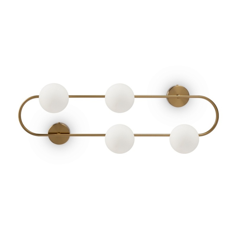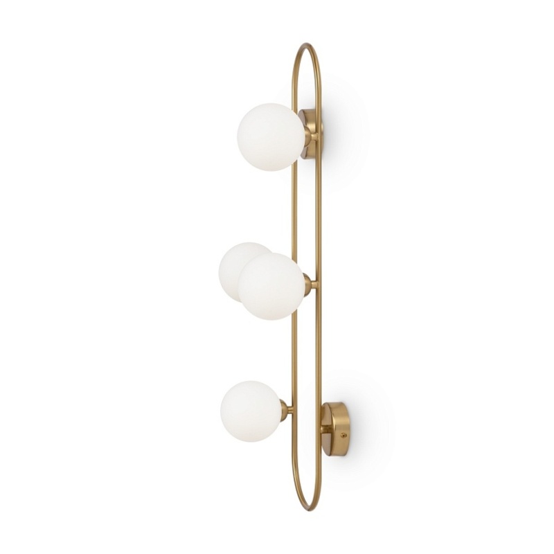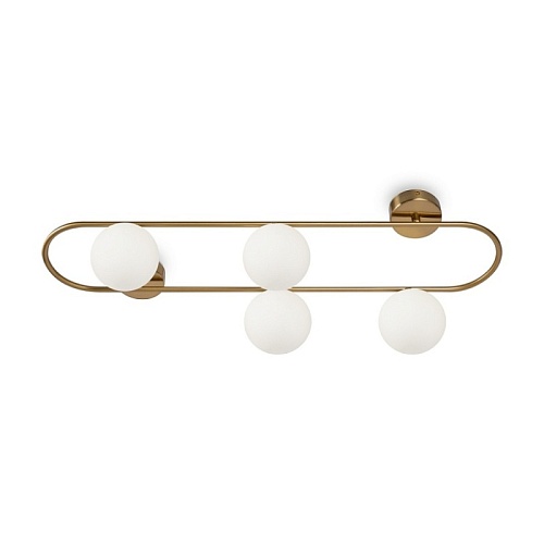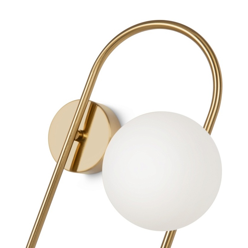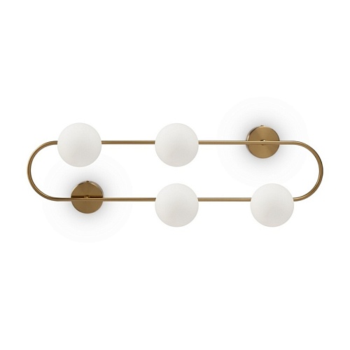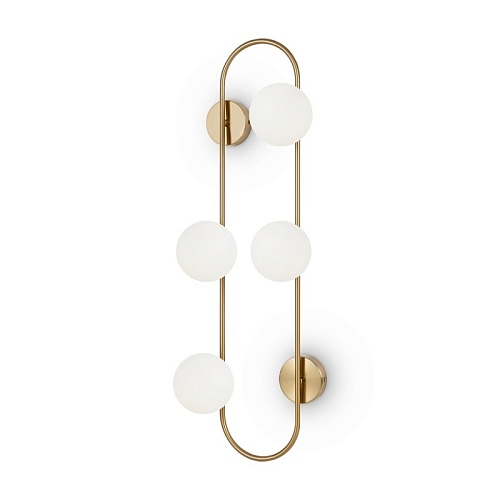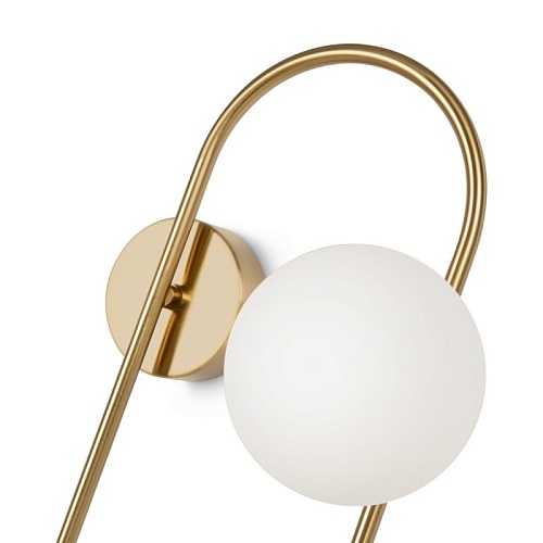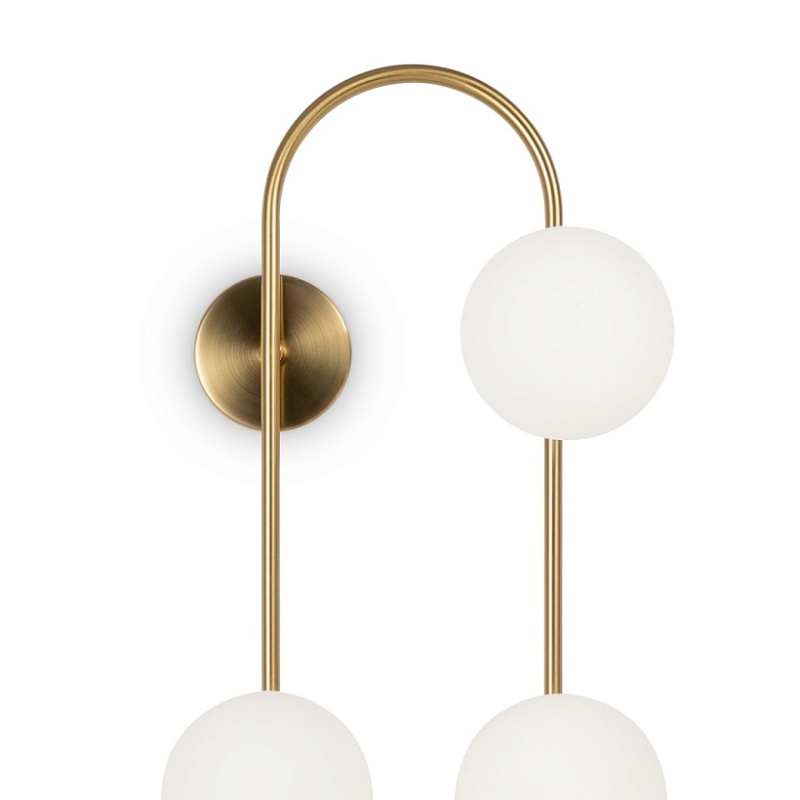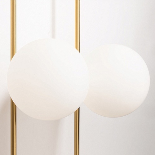 Арматура - металл, цвет - латунь. Стеклянные плафоны-сферы в двух оттенках белый матовый и дымчатый в настенно потолочной версии. Округлые и плавные линии - беспроигрышное сочетание для современных интерьеров. Настенные бра можно использовать как для общего на потолке так и для зонального настенного освещения Источник света - лампа с цоколем G9.