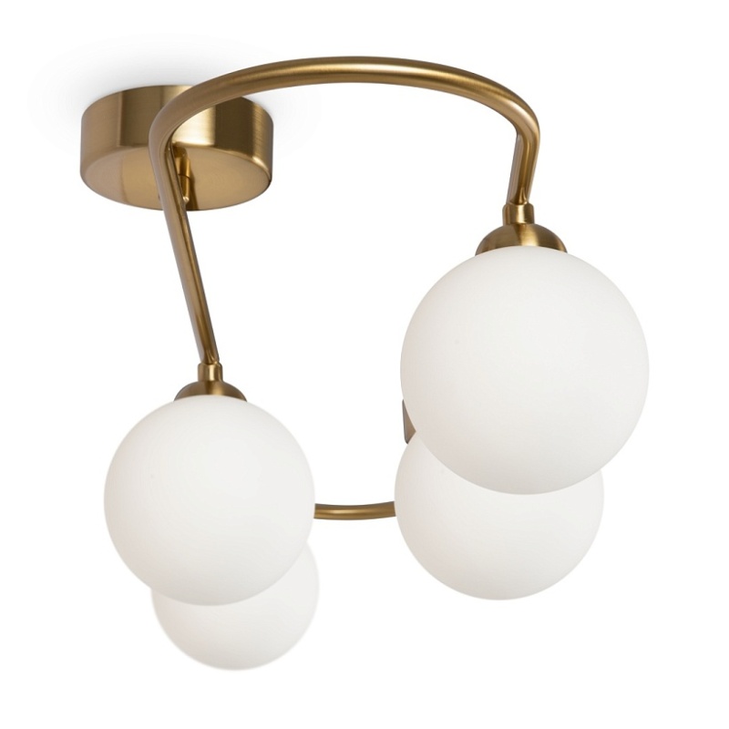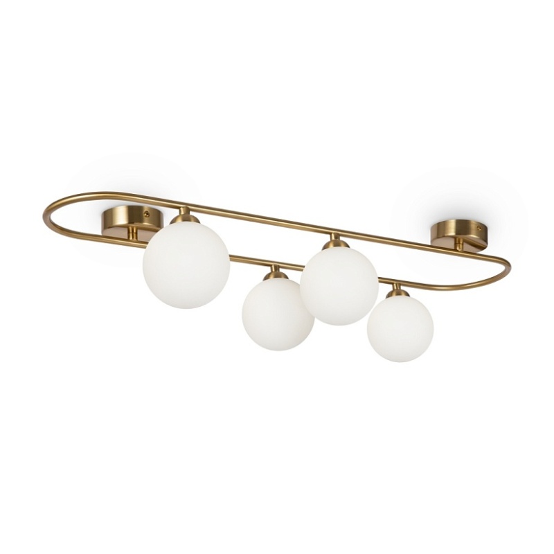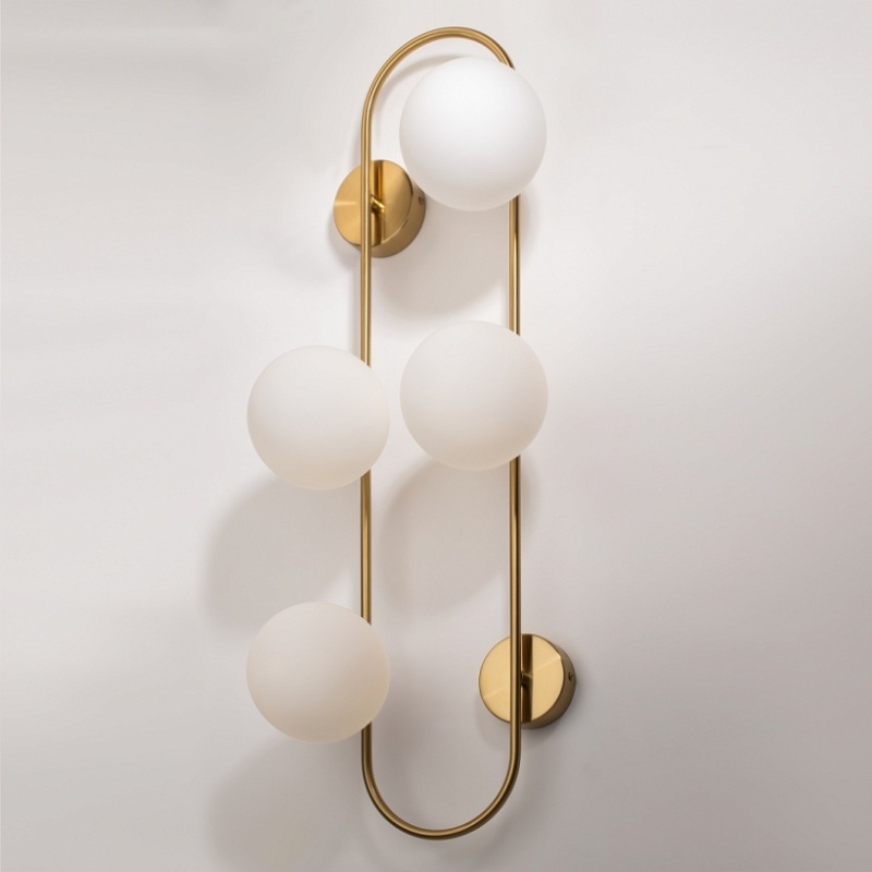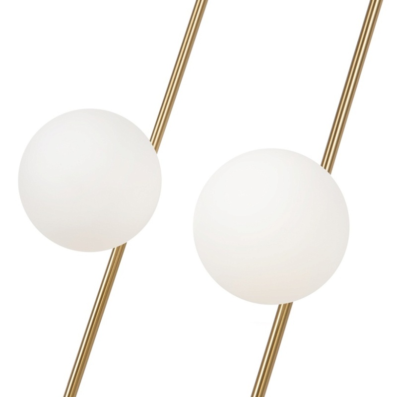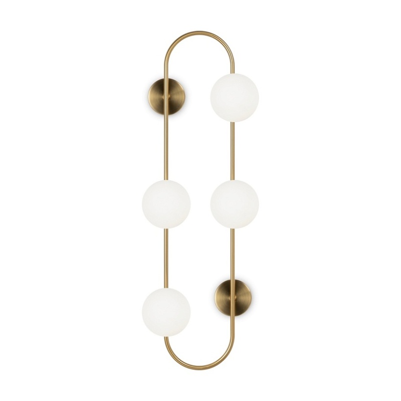 Арматура - металл, цвет - латунь. Стеклянные плафоны-сферы в двух оттенках белый матовый и дымчатый в настенно потолочной версии. Округлые и плавные линии - беспроигрышное сочетание для современных интерьеров. Настенные бра можно использовать как для общего на потолке так и для зонального настенного освещения Источник света - лампа с цоколем G9.