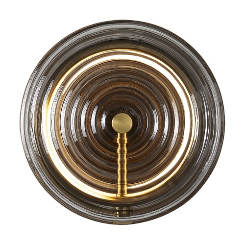 Арматура - металл. Цвет арматуры латунь. Плафоны из стекла в форме леденцов выполнены в четырех цветах: серый, зеленый, прозрачный и желто-оранжевый. Широкий спектр типов светильников: торшеры, настенные бра и подвесы. LED источник света. Цветовая температура 3000К.