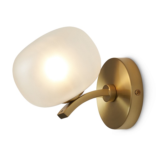 Арматура - металл. Цвет арматуры - латунь. Серия с необычной формой плафонов — немного приплюснутые, матовые белые. Настольные лампы и настенные бра выгнутой формы. Источник света лампа. Цоколь G9.
