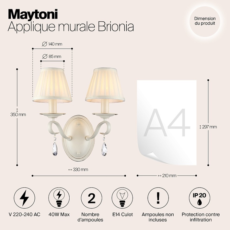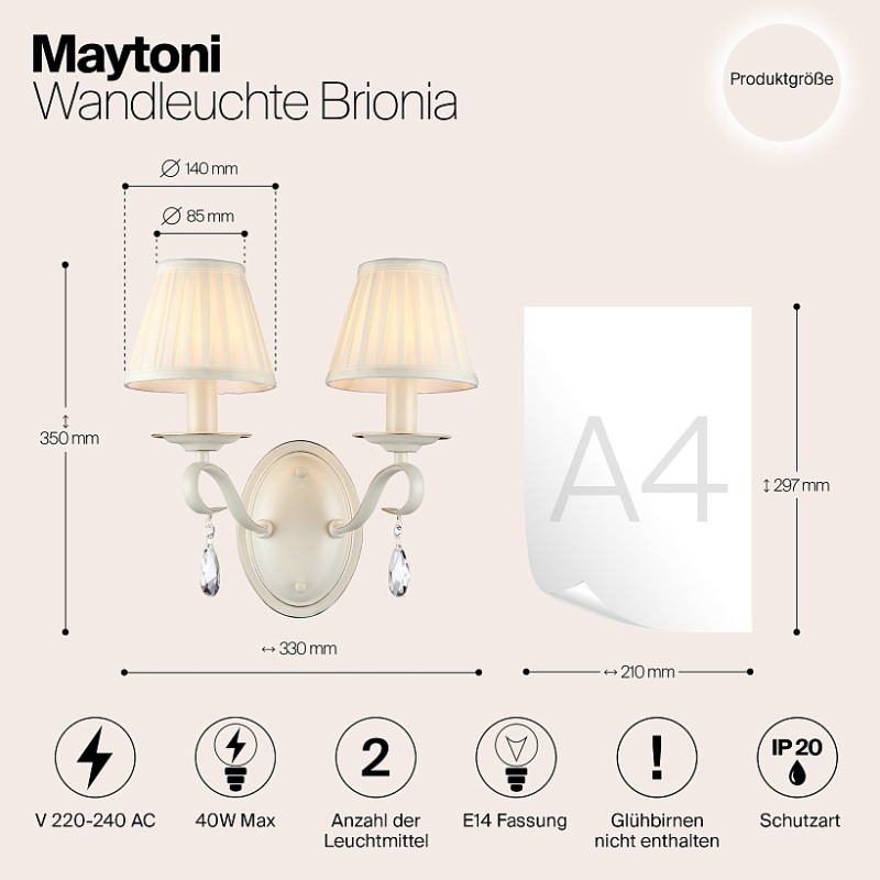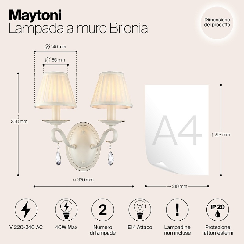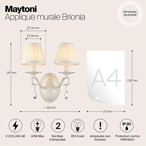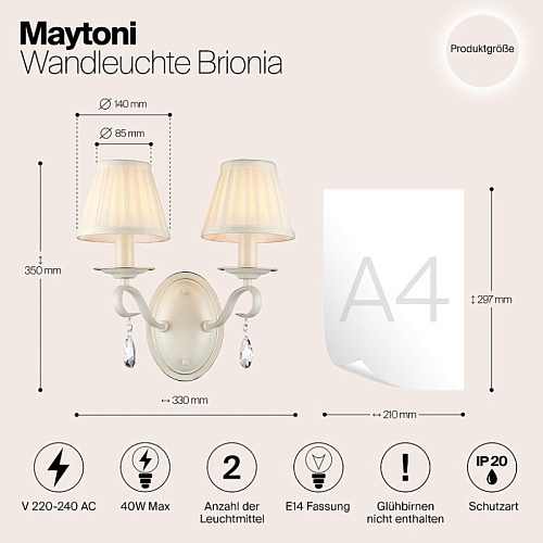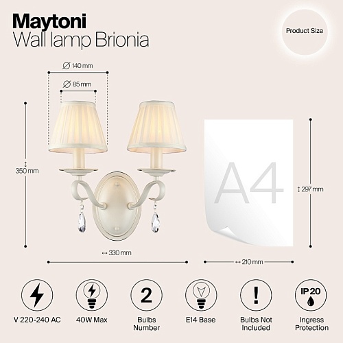 Характеристики Настенный светильник (бра) Maytoni Brionia ARM172-02-G