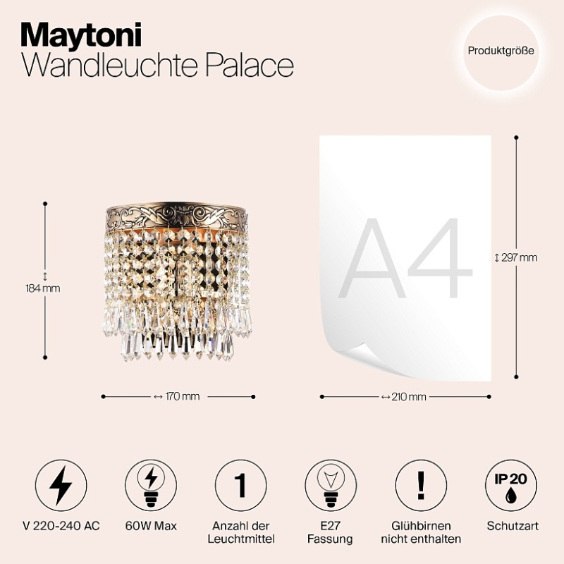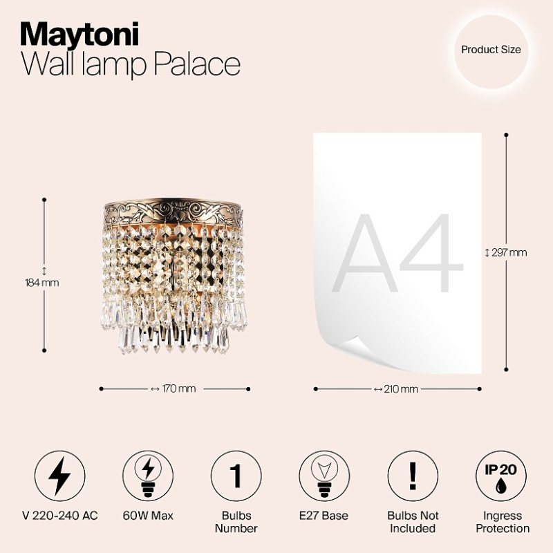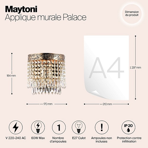 Характеристики Настенный светильник (бра) Maytoni Palace DIA890-WL-01-G