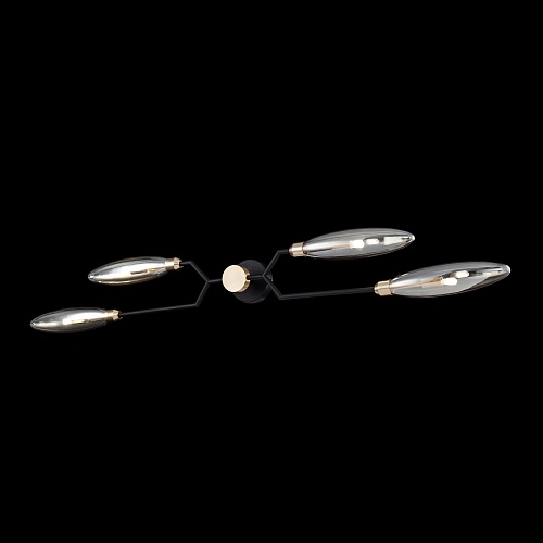 Металлическая арматура оттенка матового золота. Отдельные элементы выкрашены в черный цвет. Плафоны из стекла янтарного оттенка. Оригинальная вытянутая форма плафонов. Регулируемая высота подвеса.