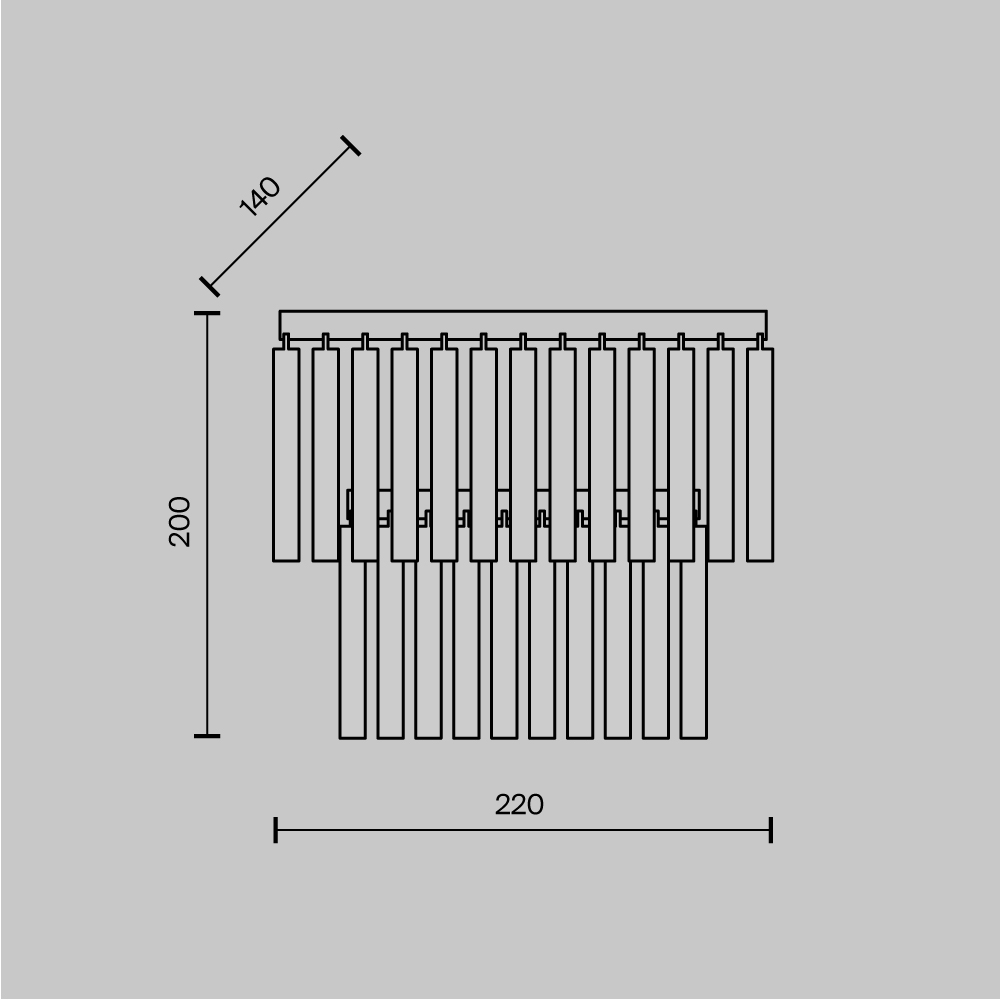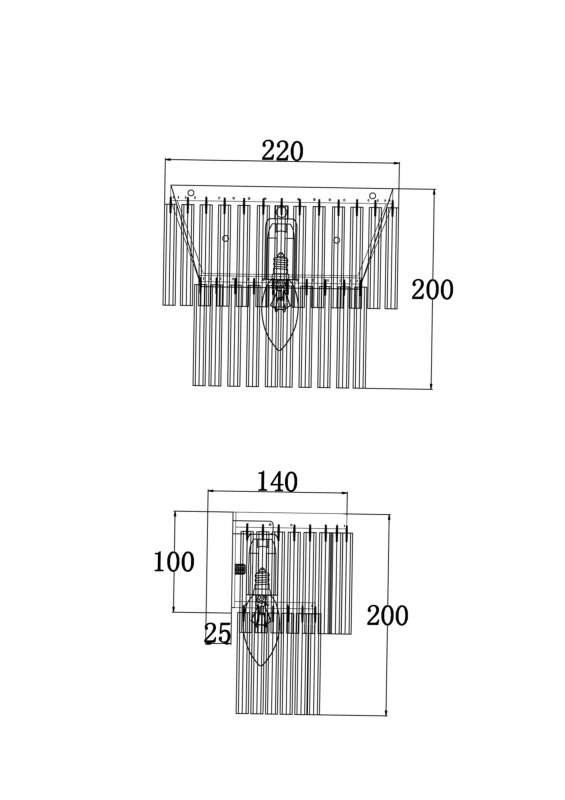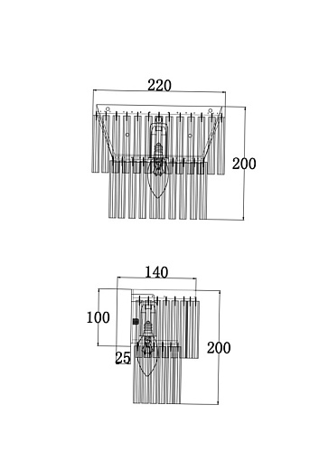 Металлическая арматура в двух оттенках: хром и латунь. Декоративные эле менты – прозрачные стеклянные трубки в форме звезд. Многоярусный декор обеспечивает игру света.