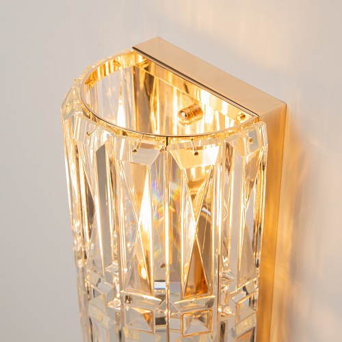 Материал арматуры – металл, оттенки – хром и золото. Декор – прозрачные стек лянные кристаллы. Архитектурная огранка декоративных элементов. Цоколь Е14.