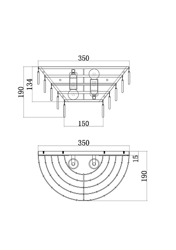 Материал арматуры – металл, цвет – золото. Фактурный декор из прозрачного стекла. Округлые подвески с рельефным узором скрывают источники света – лампы с цоколем Е14.