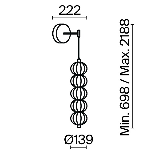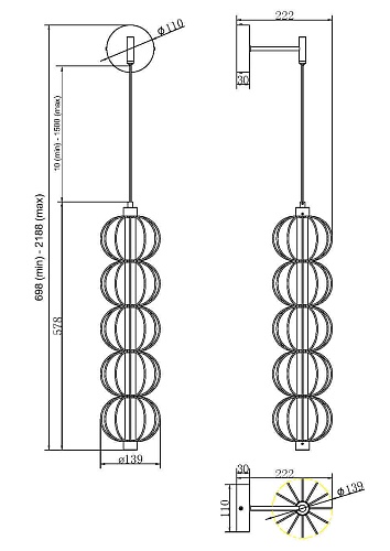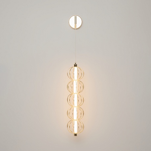 Арматура - металл, цвет - золото. Декоративные проволочные плафоны-сферы - ручная работа. Горизонтальные подвесы в двух вариатах монтажа - накладном и скрытом. Све товой элемент - силиконоваая трубка с LED-источником. Цветовая температура 3000К.