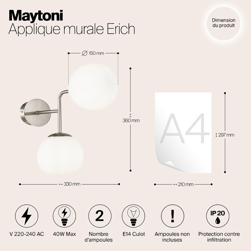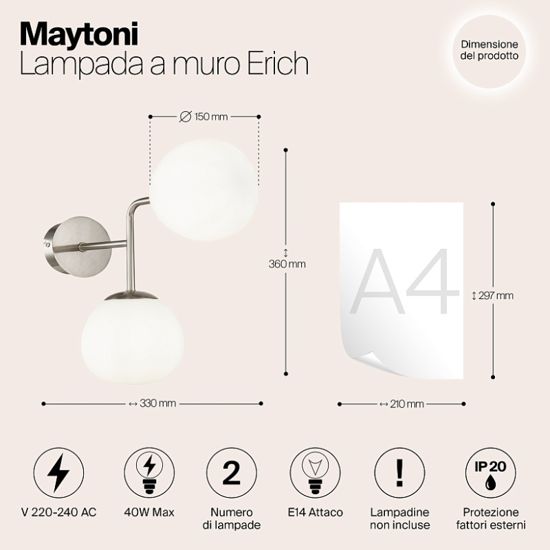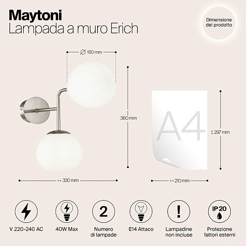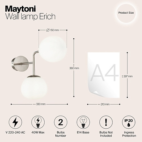 Характеристики Настенный светильник (бра) Maytoni Erich MOD221-WL-02-N