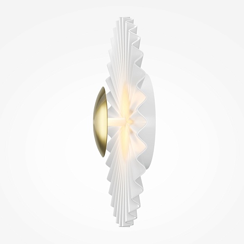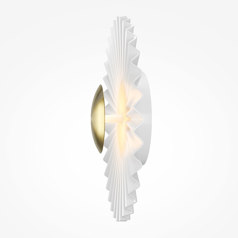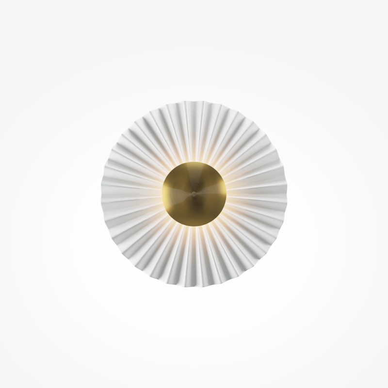 Материал светильников - металл округлой формы 300 мм в диаметре. Цвет - белый. LED-источник света. Цветовая температура — 3000 К. Тип рассеивания — переотраженный. Угол рассеивания — 180°. Металлизированный декоративный элемент, компактные размеры изделия позволяют использовать бра в качестве декора.