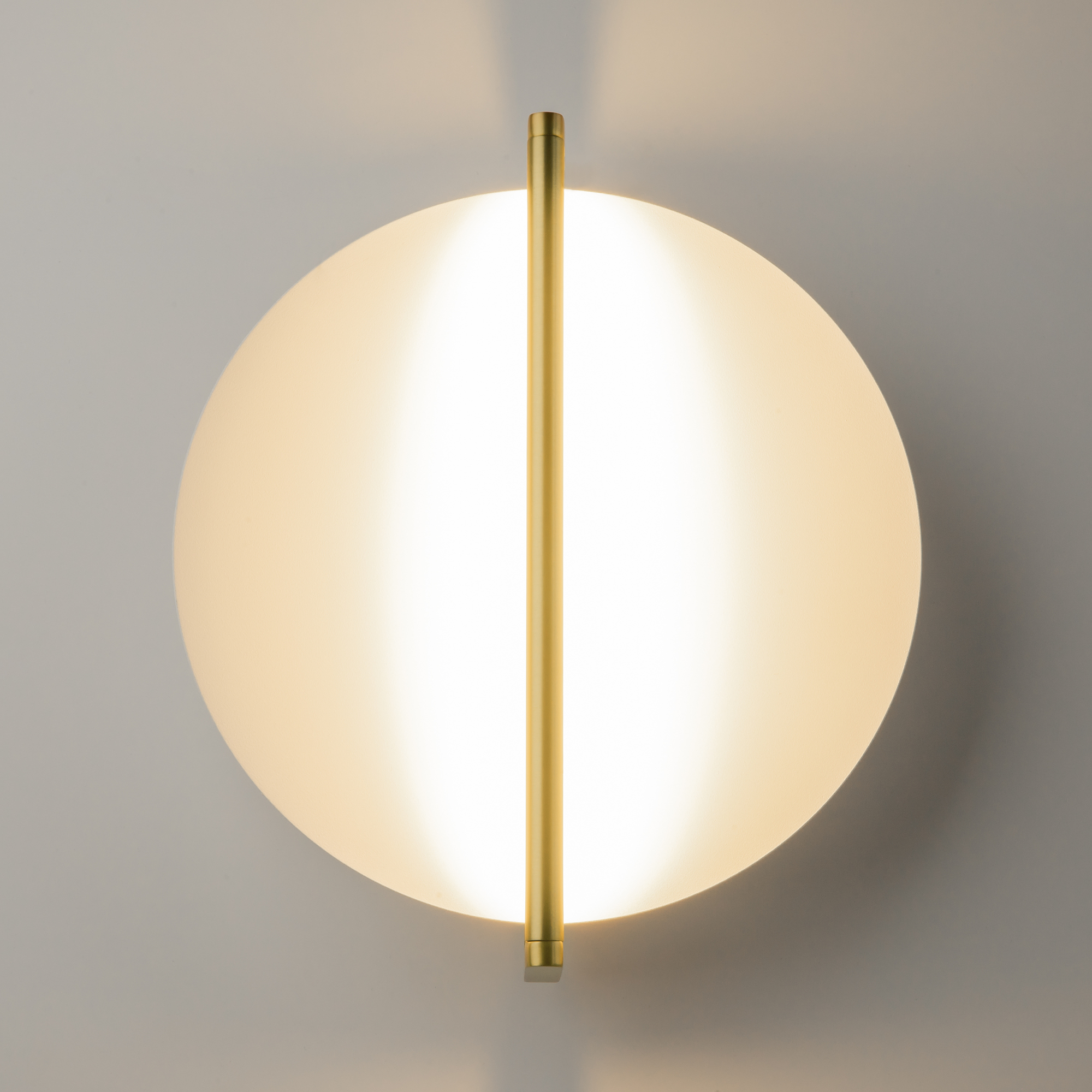 Металлический световой элемент в двух цветах (латунь, черный) со скрытым рассеивателем. Белый матовый диск-отражатель мягко рассеивает свет. Магнитное крепление плафона к арматуре. LED-источник света, цветовая температура 3000К.
