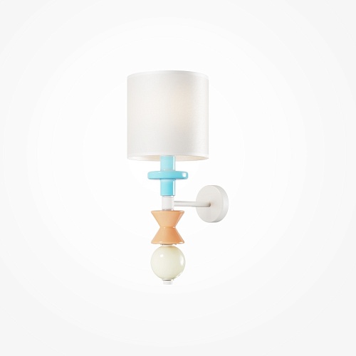 Арматура из металла, цвет - белый. Абажур выполнен из натуральной ткани, цветные декоративные элементы в пастельных тонах — из керамики. Белый абажур имеет классическую цилиндрическую форму, ткань дает мягкий рассеянный свет. Светильники комплектуются сменными лампами с цоколем Е27 (не входят в комплект). Провод подвесного светильника можно регулировать по длине. Декор напоминает стилистику крафтового искусства