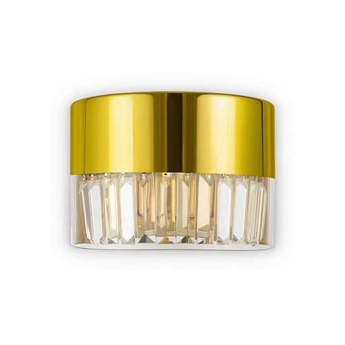 Арматура из нержавеющей стали в двух оттенках: хром, золото. Плафон из выду вного стекла, внутри – хрустальные подвесы. Часть плафона с зеркальным покры тием в тон арматуре. Цоколь Е14.