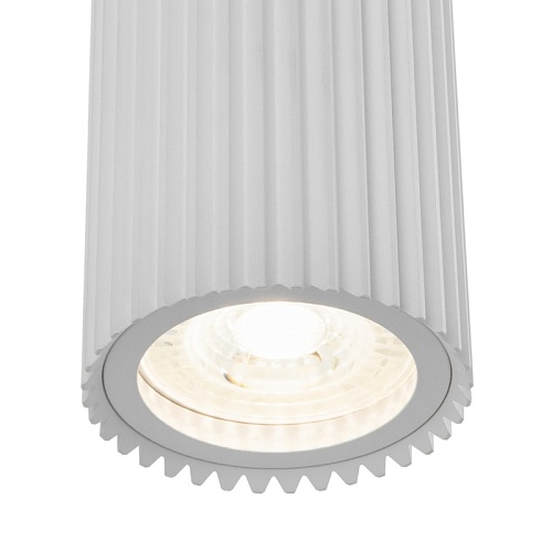 Материал арматуры — алюминий. Порошковое окрашивание в три цвета: матовый черный, матовый белый, матовое золото. Плафон с трендовой рифленой фактурой. Подвесные модели с внешним стеклянным элементом. Яркий направленный свет.