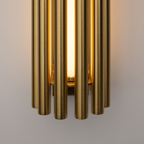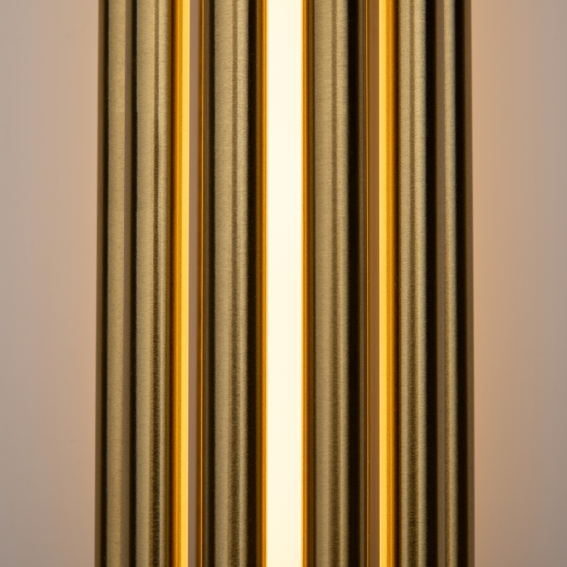 Алюминиевая арматура в двух оттенках: латунь, хром. Мягкий акриловый рассеиватель, плавное распределение света. Декор – металлические трубки в тон арматуре. LED-источник света, цветовая температура 3000К.