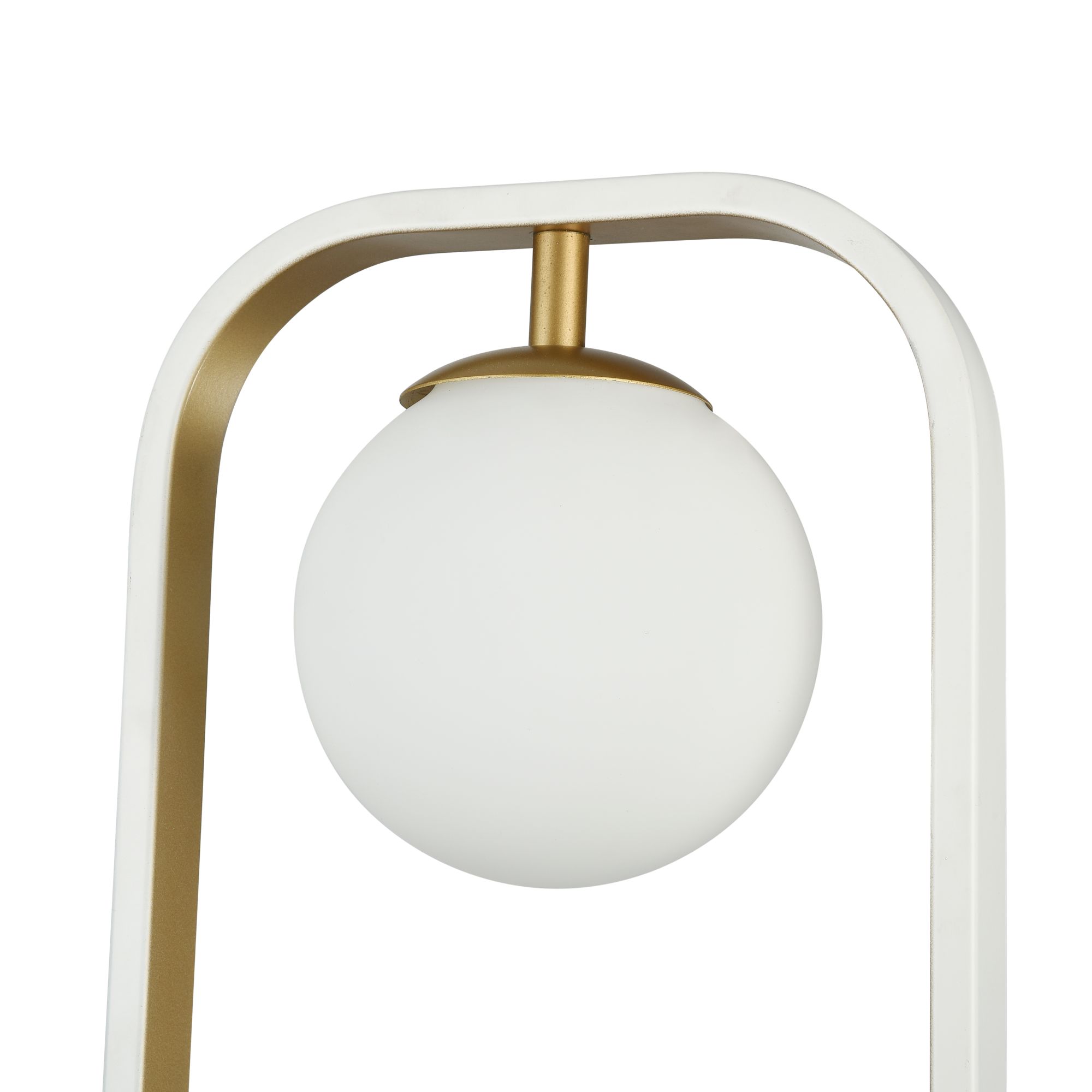 Металлическая арматура в комбинации двух оттенков: белый и серебро, белый и золото. Плафоны-сферы из выдувного стекла, цвет – белый. Регулируемая высота.