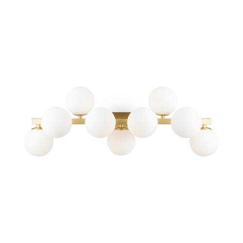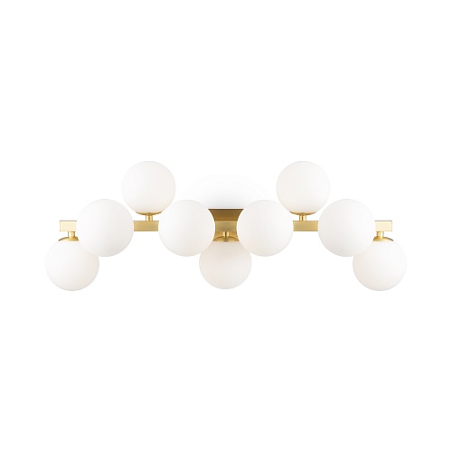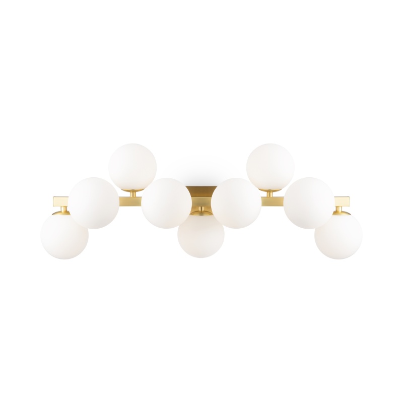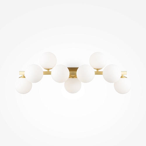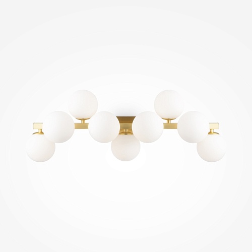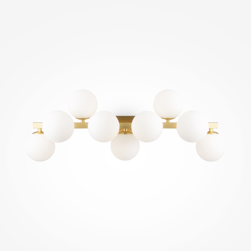 Металлическая арматура в четырех цветах: матовый черный, хром, золото, латунь. Плафоны — выдувное стекло. Цвета — дымчатый, янтарный, коньячный. Дизайн с имитацией молекулярной структуры. Высота подвесных светильников регулируется тросом. Лампа с цоколем G9.