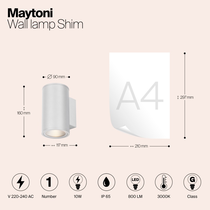 Характеристики Настенный светильник (бра) Outdoor Shim O303WL-L10W3K