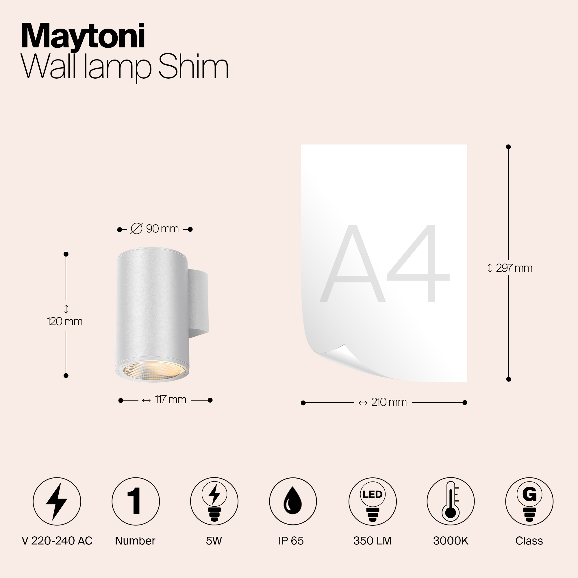 Характеристики Настенный светильник (бра) Outdoor Shim O303WL-L5W3K