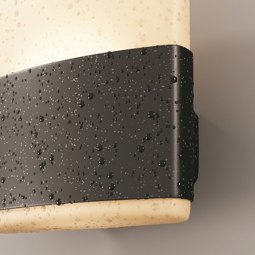Корпус из алюминия, цвет - графит. Рассеиватель - белый матовый акрил. Равномерное мягкое рассеивание света. LED-источник света, цветовая температура - 3000К. Степень защиты - IP54.