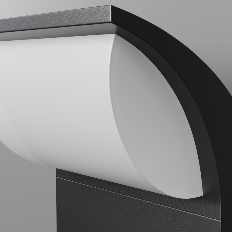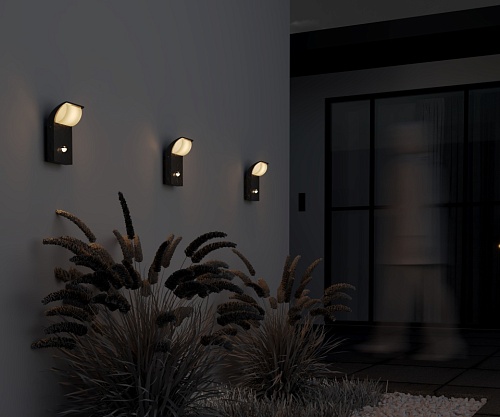 Материал корпуса - алюминий, цвет - графит. Белый матовый рассеиватель. LED-источник света. Цветовая температура 3000К. Наличие встроенного датчика движения у настенной модели. Степень защииты IP65 и IP44 настенной модели с датчиком движения.