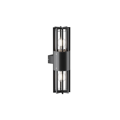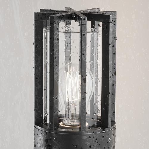 Металлический корпус, цвет - графит. Плафон из прозрачного стекла защищен декоративной металлической решеткой. Источник света — лампа с цоколем Е27. Степень защиты от пыли и влаги - IP54.