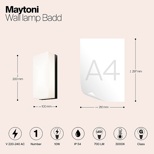 Характеристики Настенный светильник (бра) Outdoor Badd O454WL-L10GF3K