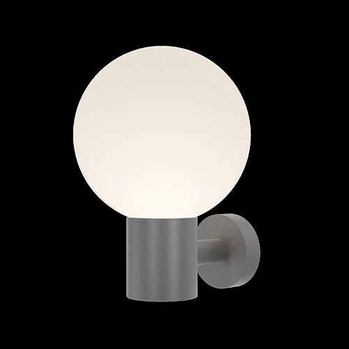 Алюминиевый корпус. Оттенки - черный, серый. Сферические плафоны из белого матового стекла. Защита от коррозии и перападов температур. Высокая степень защиты — IP 54. Источник света — лампа с цоколем E27.