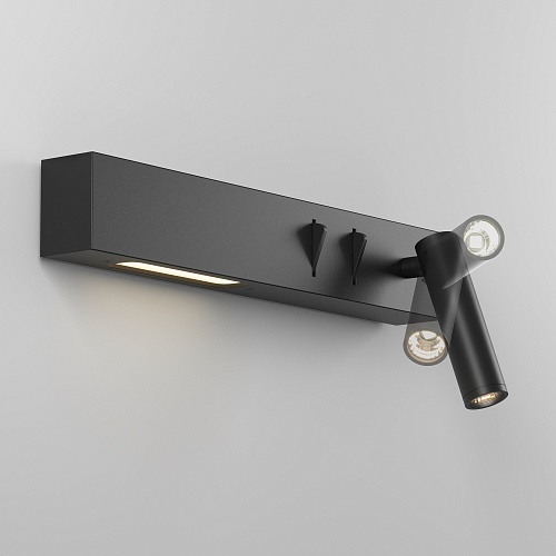 Настенные прикроватные светильники с двумя встроенными источниками света. Локальная подсветка позволит осветить книгу или журнал, а рассеянная создаст атмосферу непринужденности. Светильник управляется выключателями, расположенными на корпусе. В качестве обоих источников света использованы встроенные светодиоды теплого спектра.