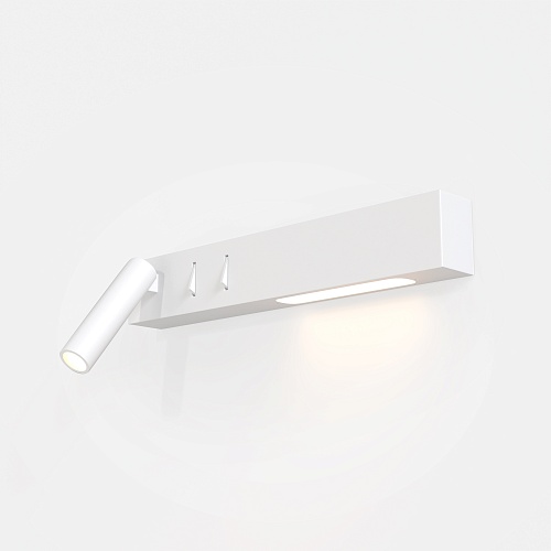 Настенные прикроватные светильники с двумя встроенными источниками света. Локальная подсветка позволит осветить книгу или журнал, а рассеянная создаст атмосферу непринужденности. Светильник управляется выключателями, расположенными на корпусе. В качестве обоих источников света использованы встроенные светодиоды теплого спектра.