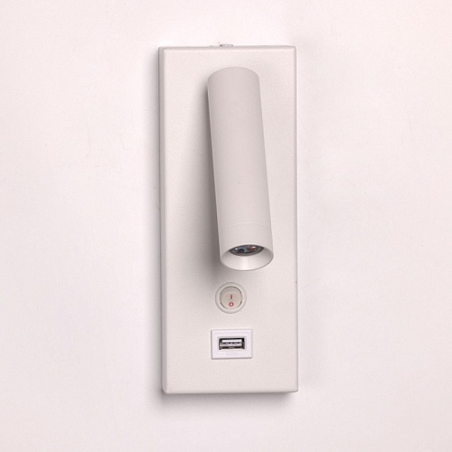 Металлическое основание настенного бра окрашено в белый цвет. Корпус плафона выполнен из сплава алюминия с цинком и окрашен в цвет основания.