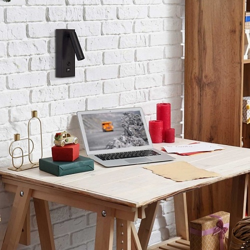 Металлическое основание настенного бра окрашено в черный цвет. Корпус плафона выполнен из сплава алюминия с цинком и окрашен в цвет основания.