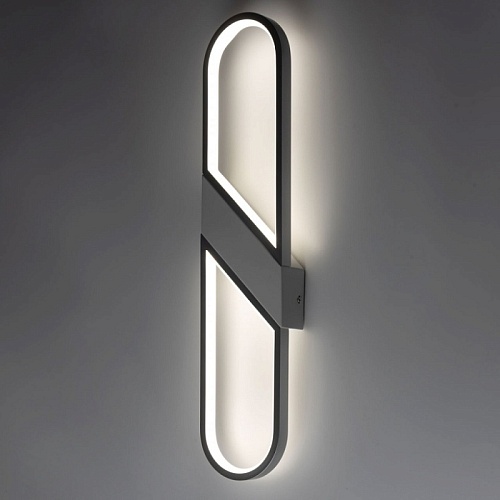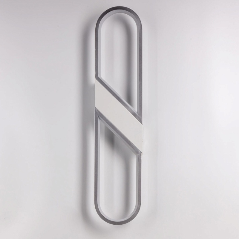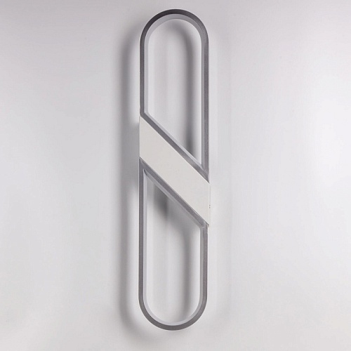 Металлическое основание настенного бра и плафон из сплава алюминия окрашены в серебряный и белый цвета. Светодиодный источник света закрыт белым матовым силиконом.