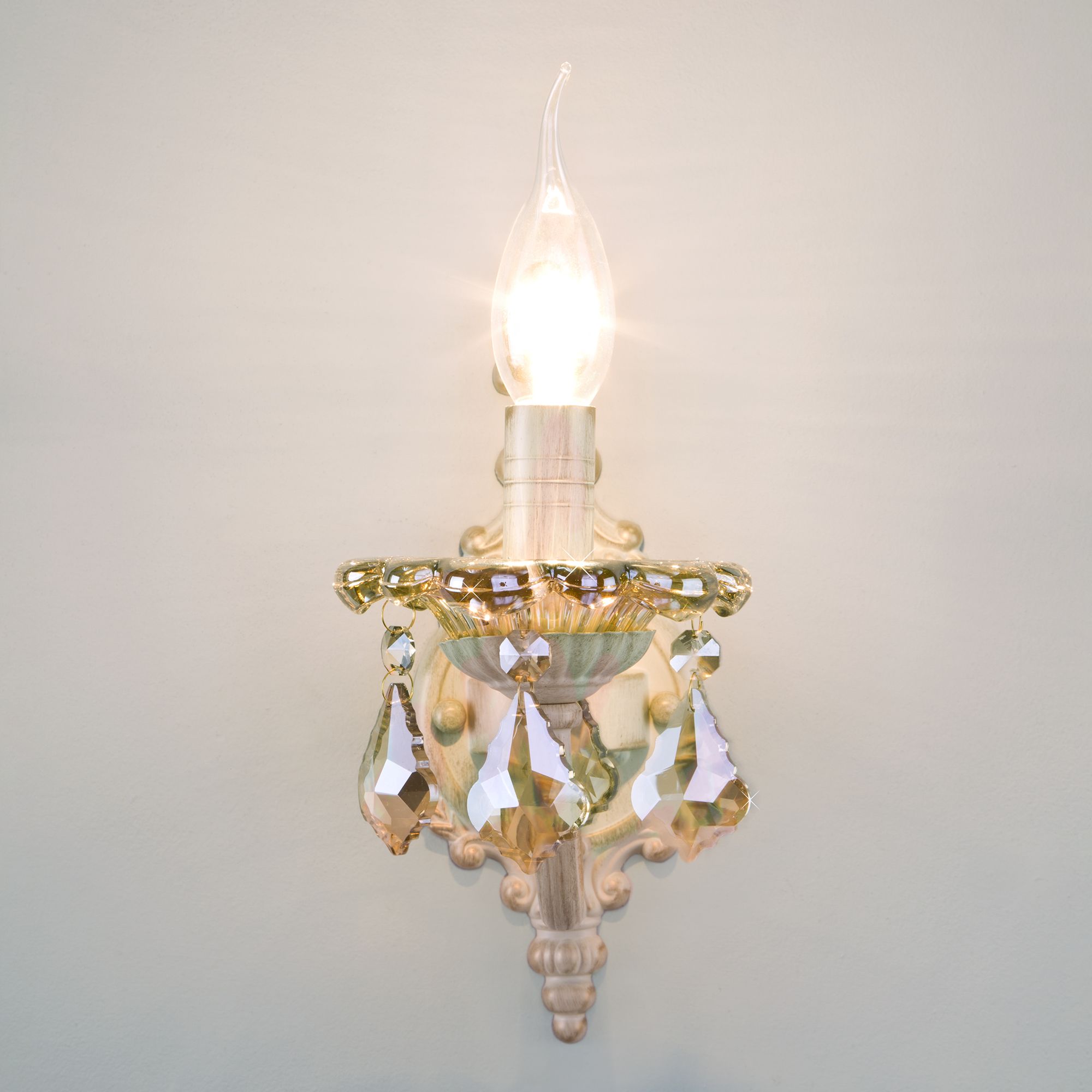 Характеристики Настенный светильник Eurosvet 3281/1 белый с золотом / тонированный хрусталь