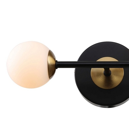 черный каркас с декоративными элементами цвета латуни, плафоны из белого стекла, лампу G9 можно менять