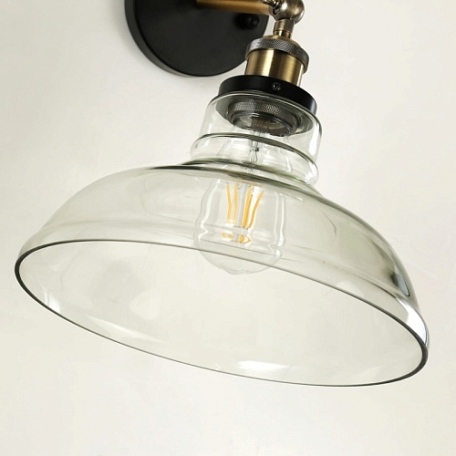 сочетание металла черного и бронзового цвета, прозрачный стеклянный плафон