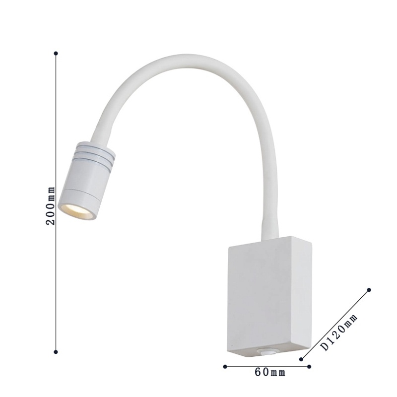 Белый металл, с выключателем, световой элемент на гибком шланге.