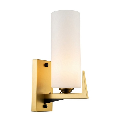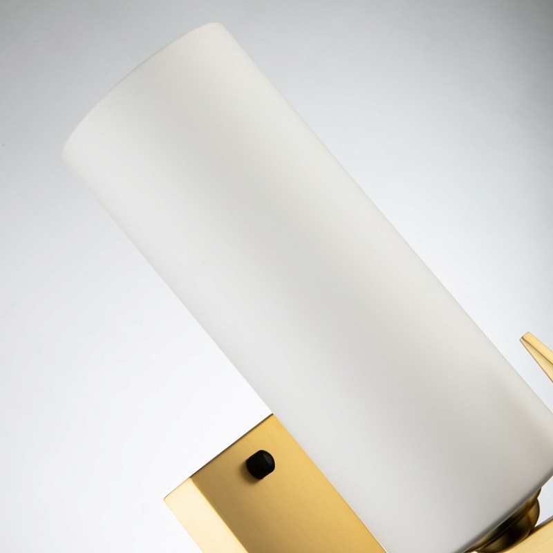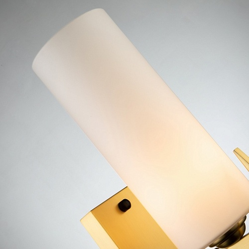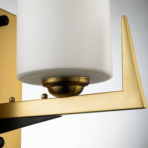 Каркас цвета латунь с элементами черного цвета, плафон из белого матового стекла