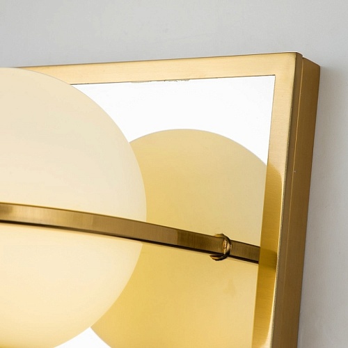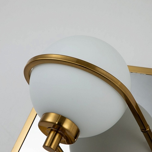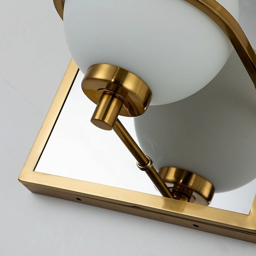 каркас цвета латуни с вставкой в цвете хром, плафоны из выдувного полу-прозрачного стекла