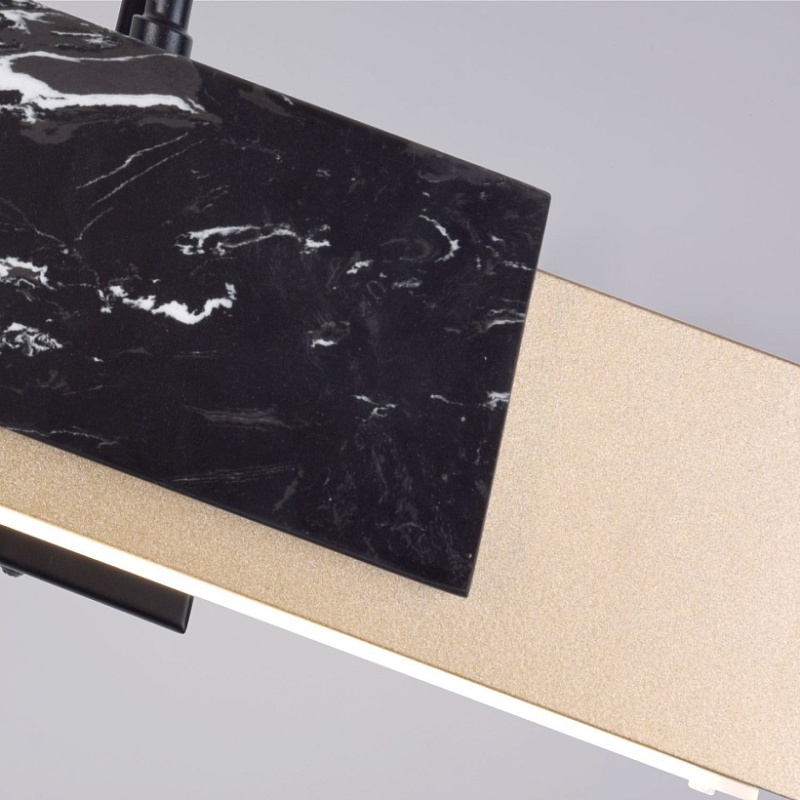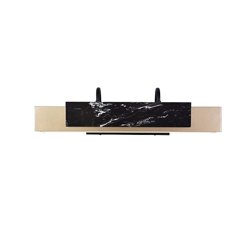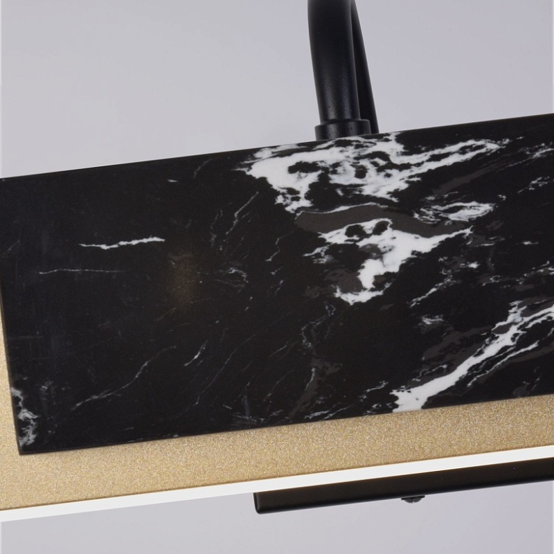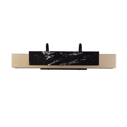 каркас черного цвета, встроенная лента LED с акриловым рассеивателем цвета золота и декор в стиле черного мрамора.