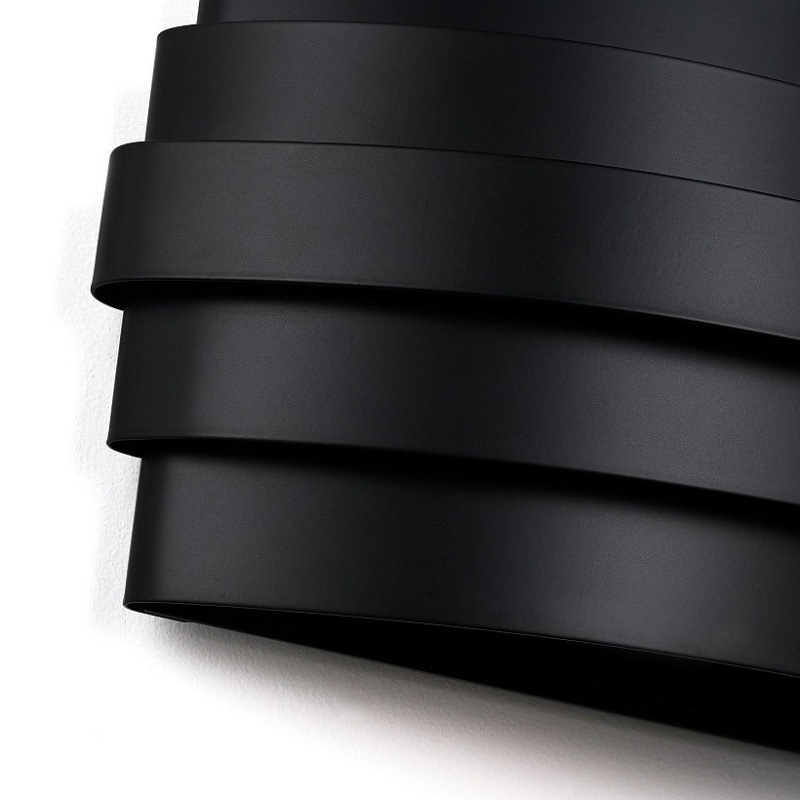 настенный светильник в форме закругленных горизонтальных полос черного матового цвета, лампа LED на 9W