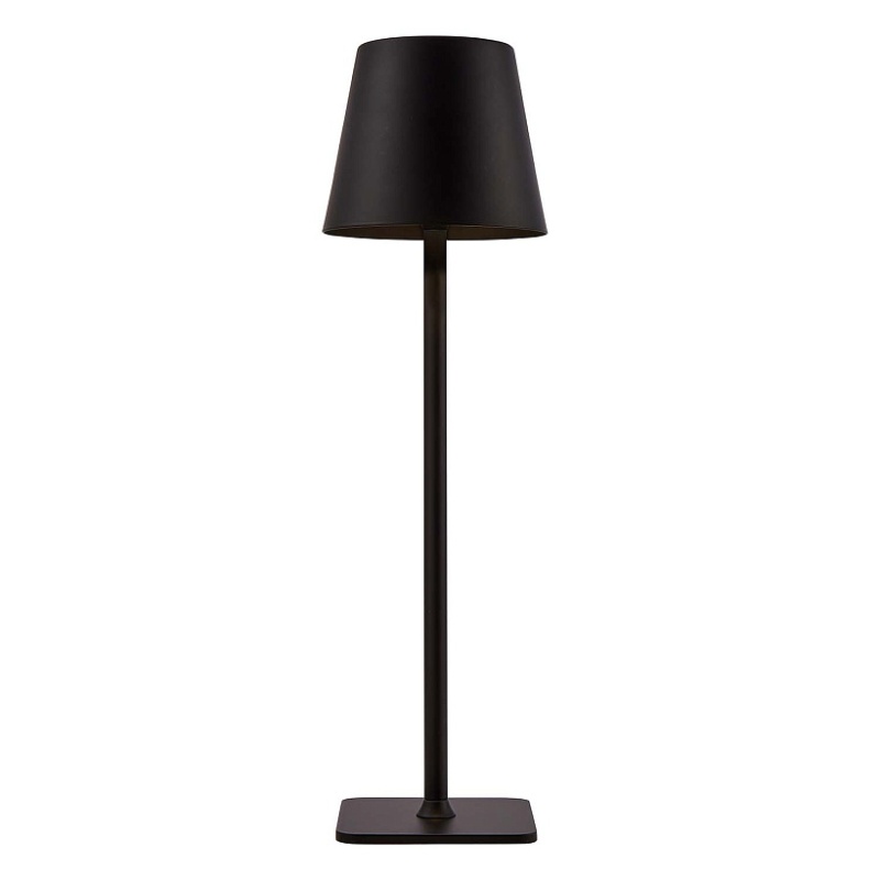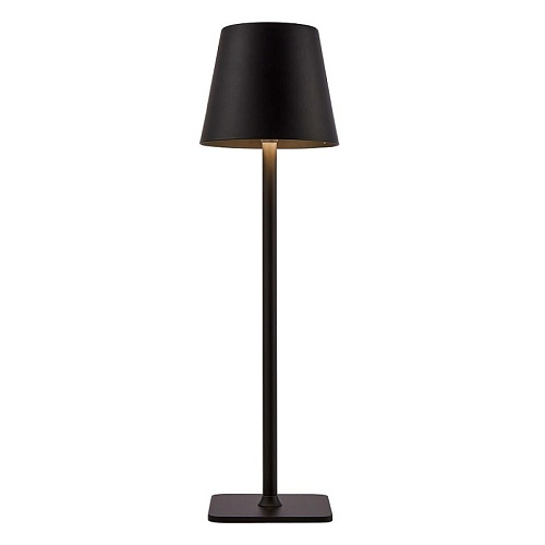 Беспроводная лампа, корпус из металла черного матового цвета, рассеиватель из акрила, управление касанием, зарядка через USB-порт, LED-модуль.